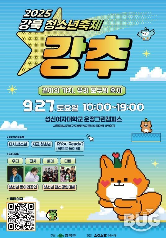 부울경문화뉴스 관리자 기자 | 서울 강북구는 오는 9월 27일 오전 10시부터 오후 7시까지 성신여자대학교 미아운정그린 캠퍼스 광장에서 ‘2025 강북 청소년축제 강추’를 개최한다.