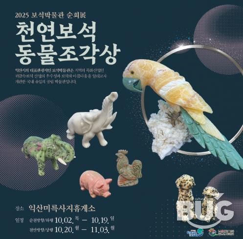 부울경문화뉴스 관리자 기자 | 익산시 보석박물관은 추석 연휴가 시작되는 10월 2일부터 11월 3일까지 익산미륵사지휴게소(양방향)에서 '천연보석 동물조각상' 순회전시를 진행한다.