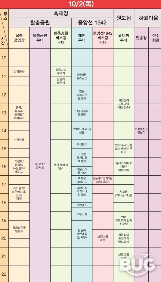 안동시는 “일곱째 날은 전통 탈춤, 해외공연, 그리고 K-POP 무대가 함께 어우러져 남녀노소 누구나 즐길 수 있는 다채로운 날”이라며, “특히 한류관광페스타는 국내외 관광객을 아우르는 대표 프로그램이 될 것”이라고 밝혔다.