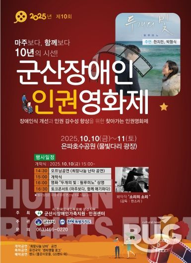 부울경문화뉴스 관리자 기자 | 군산시 장애인가족지원인권센터가 10월 10일부터 11일까지 은파호수공원 물빛다리 광장에서 군산시민을 대상으로 장애인 인식개선 및 인권의식 함양을 위한 2025년 제10회 군산장애인인권영화제를 개최한다.