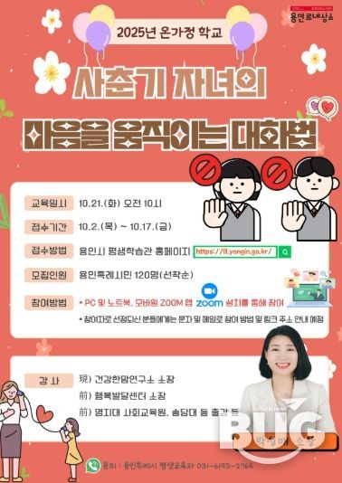 부울경문화뉴스 관리자 기자 | 용인특례시는 ‘사춘기 자녀 마음을 움직이는 대화법’을 주제로 한 ‘2025년 온가정 학교’ 온라인 특강 참가자를 모집한다고 2일 밝혔다.