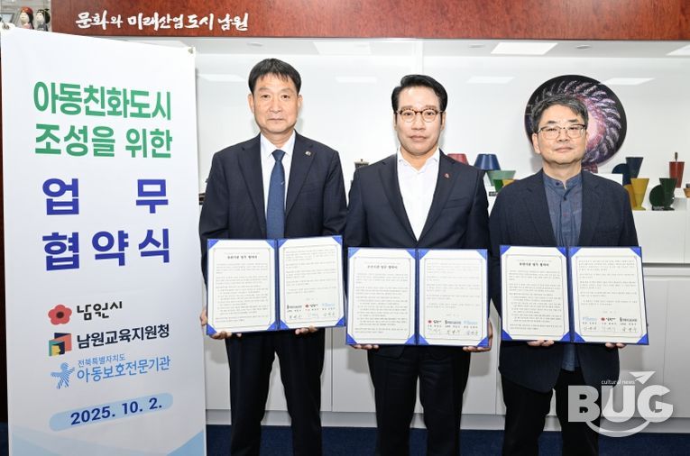 부울경문화뉴스 관리자 기자 | 남원시는 지난 2일 남원교육지원청, 전북동부아동보호전문기관과 함께 아동친화도시 조성 및 아동 권리 증진을 위한 업무협약식을 체결했다.