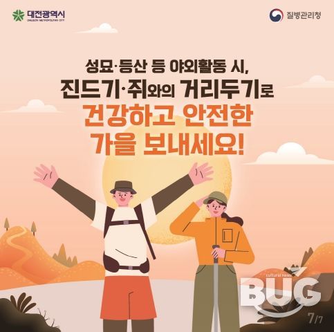 부울경문화뉴스 관리자 기자 | 대전시는 성묘와 등산, 농작업 등 야외활동이 늘어나는 가을철을 맞아 시민들에게 진드기·설치류 매개 감염병 예방수칙 준수를 당부했다.