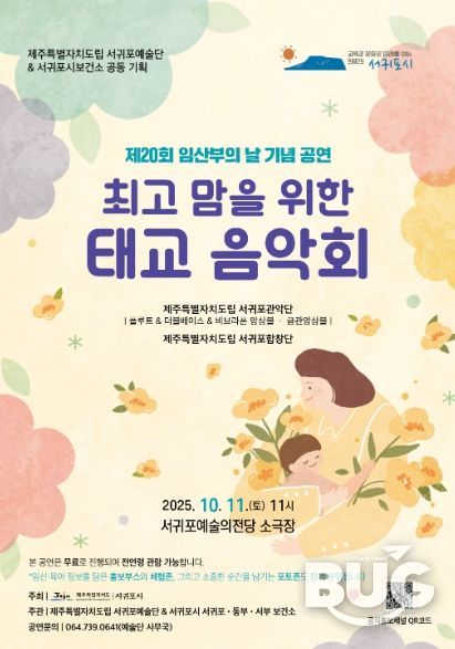 부울경문화뉴스 관리자 기자 | 서귀포시는 오는 10월 11일 11시 서귀포예술의전당 소극장에서 제주특별자치도립 서귀포예술단과 서귀포보건소가 공동으로 주관하는 제20회 임산부의 날 기념 공연 '최고 맘을 위한 태교음악회'를 개최한다.