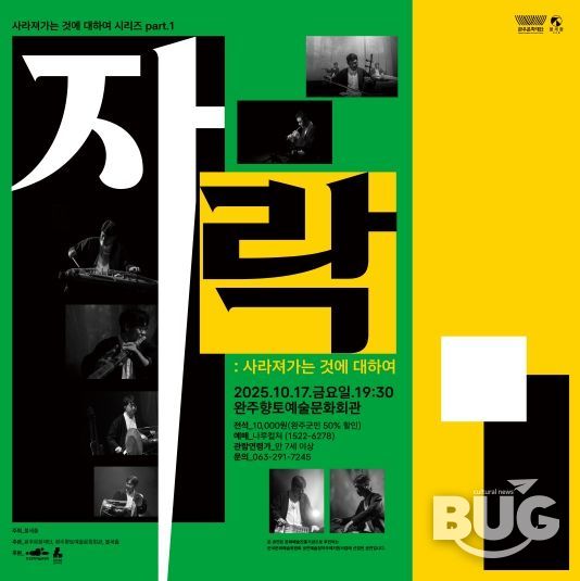 부울경문화뉴스 관리자 기자 | 전북 완주군에 깊어가는 가을밤, 사라져가는 토속 민요의 숨결을 현대적인 감각으로 재조명하고 재해석한 특별한 국악 공연이 펼쳐진다. 완주문화재단은 오는 10월 17일, 완주향토예술문화회관에서 국악앙상블 불세출의 '자락: 사라져가는 것에 대하여' 공연을 개최한다
