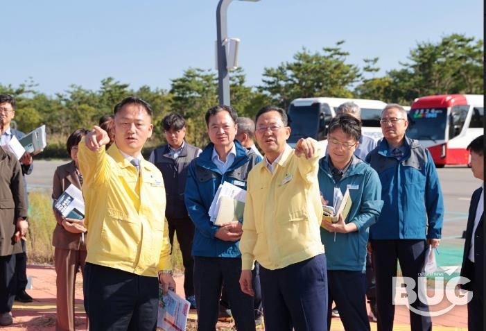 명현관 군수는 10일 대회기간 임시주차장이 운영될 산이면 구성리 솔라시도기업도시에서 현장 보고회를 갖고, 대회 준비 사항을 점검했다.