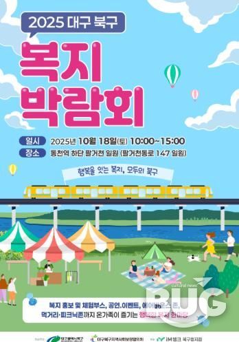 부울경문화뉴스 관리자 기자 | 대구 북구청은 오는 10월 18일 오전 10시부터 오후 3시까지, 동천역 하단 팔거천 둔치에서 ‘행복을 잇는 복지, 모두의 북구’를 슬로건으로 '2025 북구 지역복지박람회'를 개최한다.