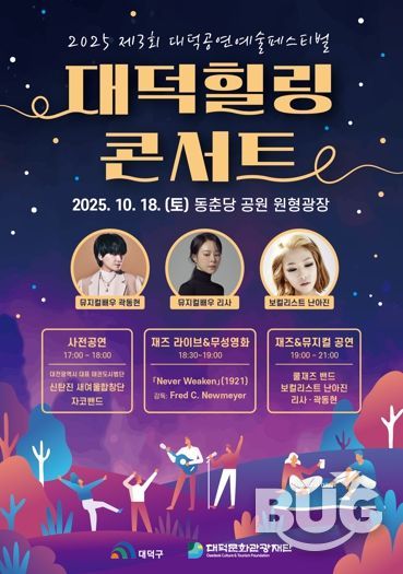 부울경문화뉴스 관리자 기자 | 대덕문화관광재단은 오는 18일 동춘당 원형광장에서 ‘2025 대덕힐링콘서트’를 개최한다고 밝혔다.