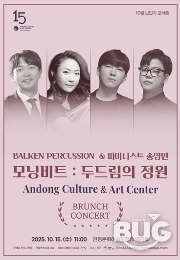 부울경문화뉴스 관리자 기자 | 안동문화예술의전당은 매월 둘째 주 수요일, 클래식 애호가들을 위한 감성 콘서트 시리즈인 ‘브런치 콘서트’를 꾸준히 선보이며 지역 문화 활성화에 앞장서고 있다. 10월의 브런치 콘서트, '모닝비트: 두드림'이 오는 10월 15일 오전 11시, 안동문화예술의전당 백조홀에서 열린다.