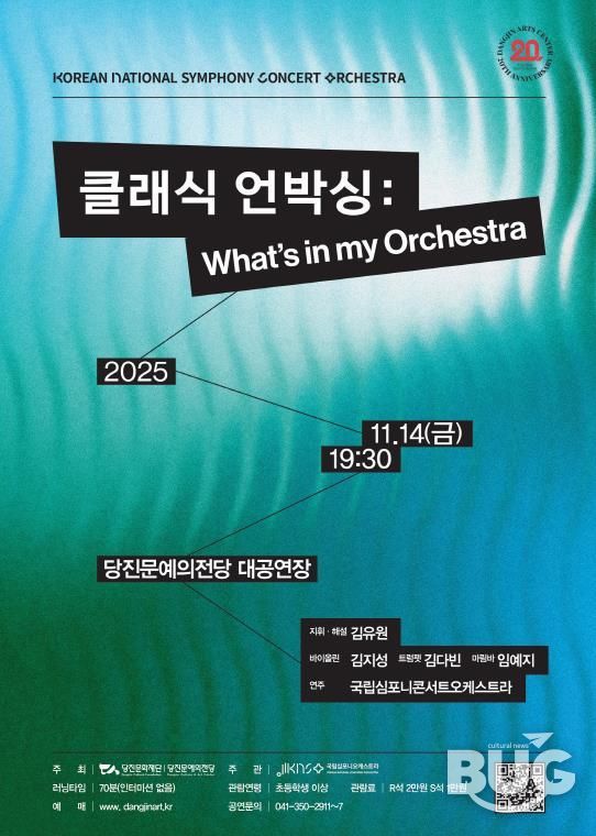 부울경문화뉴스 관리자 기자 | (재)당진문화재단·당진문예의전당은 오는 11월 14일 금요일 오후 7시 30분, 당진문예의전당 대공연장에서 국립심포니콘서트오케스트라 초청 공연‘클래식 언박싱 : What’s in my Orchestra’를 선보인다.
