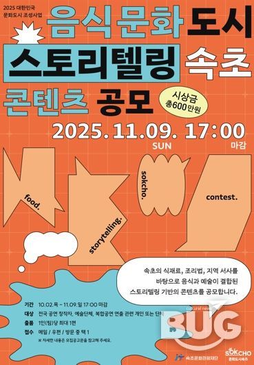 자세한 사항은 속초문화관광재단 누리집과 공식 SNS 채널에서 확인할 수 있고, 관련 문의는 문화도시센터 문화산업팀으로 하면 된다.