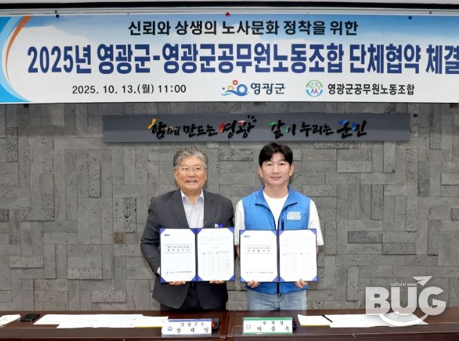 부울경문화뉴스 관리자 기자 | 영광군은 지난 10월 13일 군청 2층 소회의실에서 영광군공무원노동조합과 “2025년 단체협약식”을 체결했다.