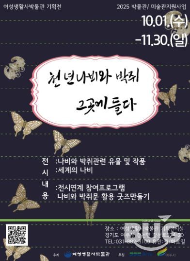 부울경문화뉴스 관리자 기자 | 여주시에서 진행하는 2025년 박물관·미술관 지원사업의 일환으로 여성생활사박물관의 ‘천년 나비와 박쥐 그곳에 들다’ 전시가 10월 1일부터 11월 30일까지 개최된다.