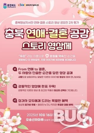 부울경문화뉴스 관리자 기자 | 충북도는 오는 10월 16일 오후 7시, 오송 선하마루에서 ‘충북 연애·결혼공감 스토리 영상제’를 개최한다고 밝혔다.