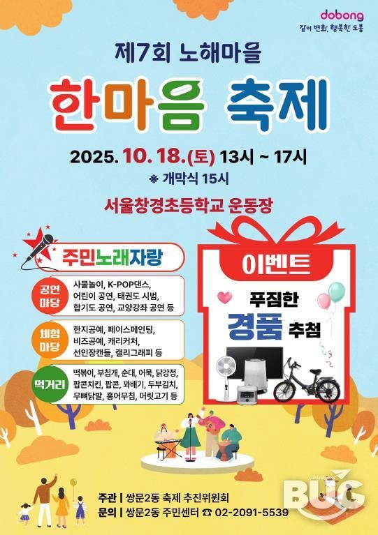 부울경문화뉴스 관리자 기자 | 서울 도봉구 쌍문2동이 10월 18일 오후 1시 서울창경초등학교에서 ‘제7회 노해마을 한마음 축제’를 개최한다.