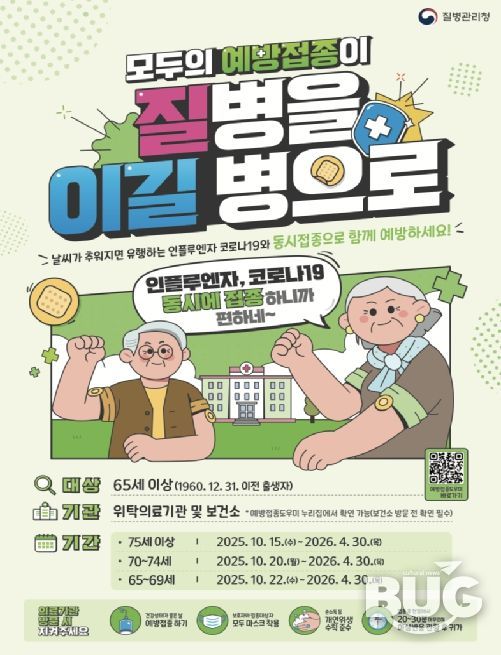 접종은 연령별로 순차 진행된다. 75세 이상은 15일부터, 70~74세는 20일부터, 65~69세는 22일부터 시작하며, 종료일은 2026년 4월 30일이다.