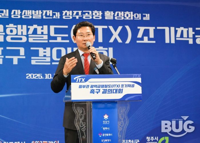 이 시장은 이날 오후 청주국제공항 여객청사에서 열린 ‘중부권 광역급행철도(JTX) 조기착공 촉구 결의대회’에서 지난 8월 국토교통부가 한국개발연구원에 의뢰한 민자적격성 조사가 신속하게 통과돼 철도 신설을 위한 착공이 조기에 이뤄져야 한다고 강조했다.