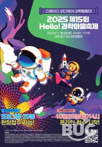 부울경문화뉴스 관리자 기자 | 대전 동구는 오는 20일 오후 2시부터 ‘2025년 Hello 과학마을축제, 스페이스 오디세이 우주탐험대’ 체험부스의 온라인 사전접수를 시작한다고 15일 밝혔다.