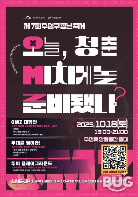 부울경문화뉴스 관리자 기자 | 대구 수성구는 오는 18일 수성못 상화동산 일대에서 ‘2025 제7회 수성구 청년축제’를 개최한다.