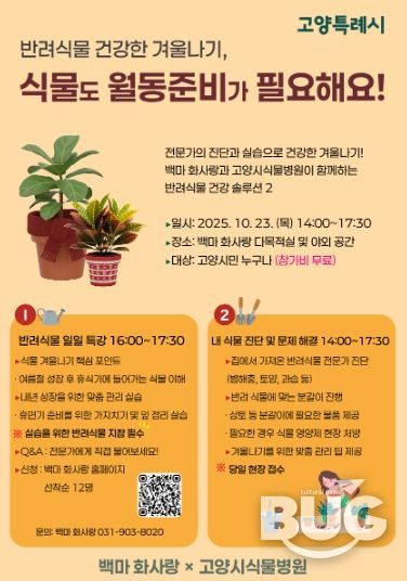 시 관계자는 "겨울은 식물이 가장 취약해지는 시기인 만큼, 이번 행사를 통해 전문가의 과학적인 진단과 맞춤형 솔루션으로 반려식물과 더욱 건강하고 풍요롭게 겨울을 나시길 바란다”고 전했다.