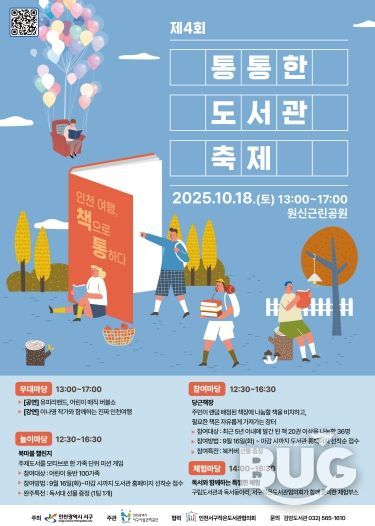 부울경문화뉴스 관리자 기자 | 인천 서구 구립도서관(검암·단봉늘봄·검단·심곡·석남·신석 도서관)이 오는 18일 원신근린공원에서 ‘제4회 통통한 도서관 축제’를 개최한다.