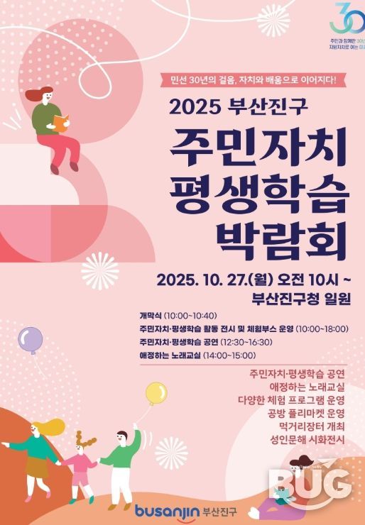 ‘민선 30년의 걸음, 자치와 배움으로 이어지다!’라는 슬로건으로 ‘2025년 부산진구 주민자치·평생학습 박람회’를 10월 27일 부산진구청에서 개최한다고 밝혔다.
