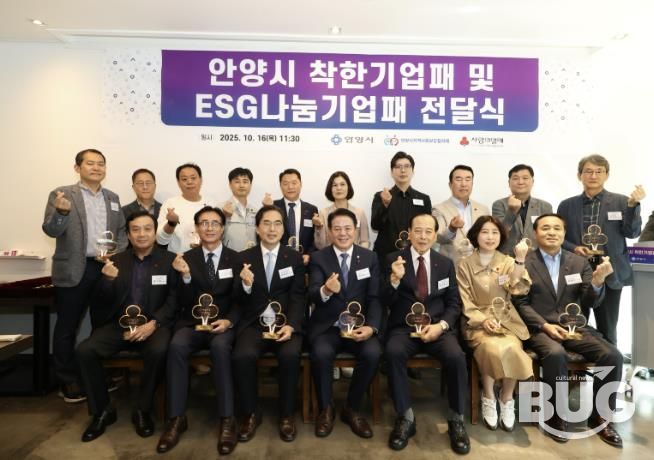 부울경문화뉴스 관리자 기자 | 안양시는 16일 오전 11시 30분 관내 음식점에서 지역사회와 이웃을 위해 나눔을 실천한 14개 기업을 대상으로 간담회와 함께 ‘착한기업’ 및 ‘이에스지(ESG)나눔기업’ 감사패 전달식을 가졌다.
