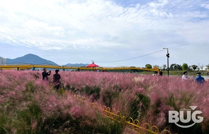 부울경문화뉴스 관리자 기자 | 장성군 황룡강 가을꽃축제 이튿날인 19일, 강변 곳곳마다 활짝 핀 가을꽃들이 방문객을 반기고 있다. 특히 용작교, 황룡정원 방면 백일홍과 연꽃정원 코스모스, 문화대교 인근 핑크뮬리가 아름답다.