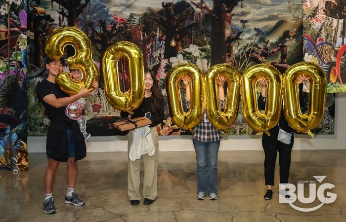 청주공예비엔날레조직위원회는 지난 18일 오후 4시 5분, 30만 돌파 축하이벤트를 진행했다. 개장 시간부터 이어진 단체 관람객과 가족 단위 관람객 행렬에 이어 30만 번째로 입장한 주인공은 청주 복대동에 거주하는 김경목 씨 가족이었다.