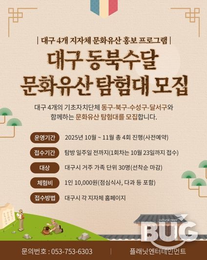 부울경문화뉴스 관리자 기자 | 대구 수성구, 동구, 북구, 달서구가 협력해 지역의 역사와 문화를 함께 배우고 체험하는 ‘대구 문화유산 탐험대’ 운영을 시작한다.