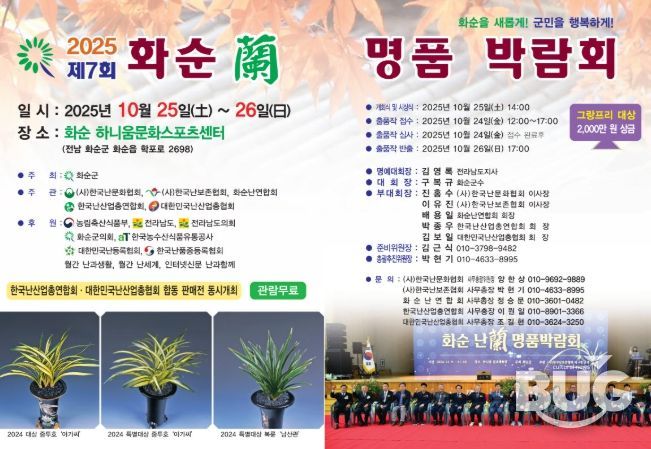 부울경문화뉴스 관리자 기자 | 대한민국 난(蘭) 산업의 중심지로 자리매김하고 있는 전남 화순군이 ‘제7회 2025 화순 난 명품 박람회’를 오는 10월 25일부터 26일까지 이틀간 화순 하니움문화스포츠센터 실내체육관에서 개최한다.