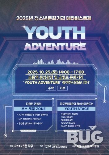 부울경문화뉴스 관리자 기자 | (재)파주시청소년재단 금촌청소년문화의집은 오는 2025년 10월 25일 토요일 금릉역 중앙광 및 금빛로 문화거리 일대에서 2025년 청소년문화거리메타버스축제 ‘YOUTH ADVENTURE’를 개최한다고 밝혔다.