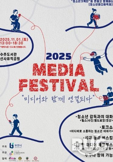 부울경문화뉴스 관리자 기자 | 부천시와 고리울청소년센터가 주관하는 ‘2025 미디어 페스티벌’이 오는 11월 1일 오후 1시부터 6시까지 수주도서관과 선사유적공원에서 개최된다. 이번 축제는 청소년기획단이 주체가되어 직접 기획하고 준비하여 진행하며, ‘미디어와 함께 연결되다’를 주제로, 사람-사람, 사람-기술이 미디어를 통해 함께 소통하고 공감하는 장을 마련했다.