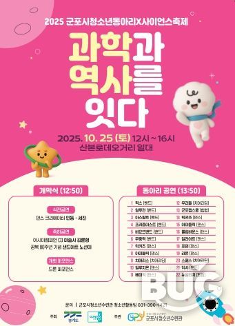 부울경문화뉴스 관리자 기자 | (재)군포시청소년재단 산하 군포시청소년수련관은 오는 10월 25일 12시부터 16시까지 산본로데오거리 일대에서 2025 군포시청소년동아리X사이언스축제 ‘과학과 역사를 잇다’를 펼친다. 청소년들에게 공연과 과학, 역사 체험의 기회를 제공하고 지역사회의 참여를 끌어내겠다는 취지이다.