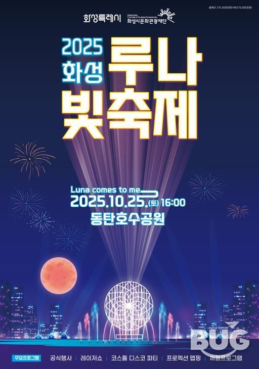부울경문화뉴스 관리자 기자 | (재)화성시문화관광재단은 화성시 대표 명소인 동탄호수공원과 루나쇼를 연계한 '2025 화성 루나 빛 축제'를 오는 10월 25일 토요일 16시에 개최한다.