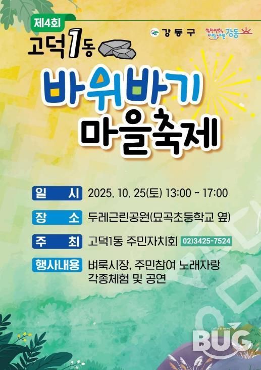 부울경문화뉴스 관리자 기자 | 강동구 고덕1동은 오는 25일 두레근린공원(고덕동 497)에서 주민 화합의 한 마당인 '제4회 고덕1동 바위바기마을축제'를 개최한다고 밝혔다.