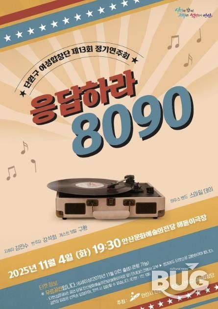 부울경문화뉴스 관리자 기자 | 안산시 단원구는 11월 4일 오후 7시 30분부터 안산문화예술의전당 해돋이극장에서 ‘응답하라, 8090’을 주제로 ‘제13회 정기연주회’를 개최한다고 29일 밝혔다.