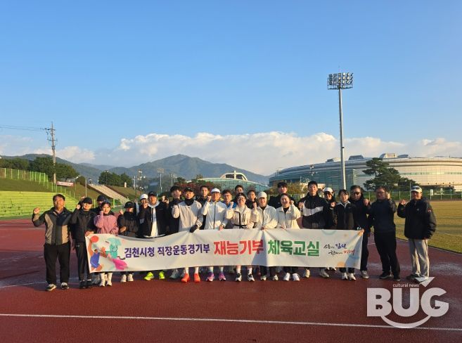 부울경문화뉴스 관리자 기자 | 김천시는 11월 2일 일요일 오전 7시 30분, 김천종합스포츠타운 보조경기장에서 시청 직장운동경기부 육상단과 함께 ‘시민 재능기부 체육교실(2차)’을 열었다.