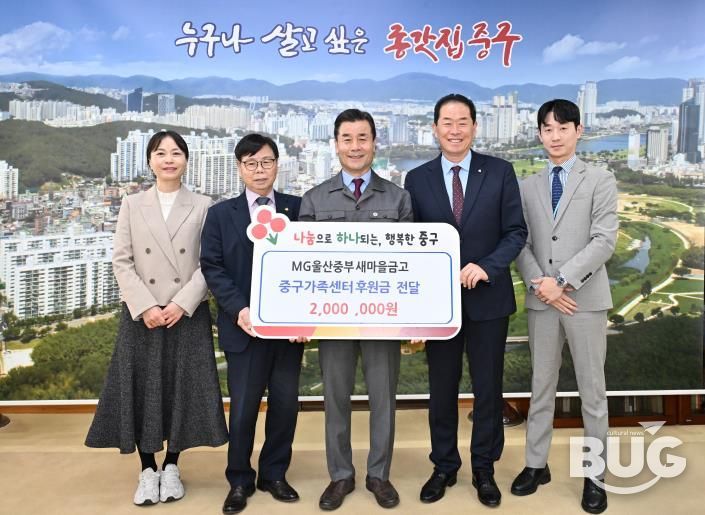 이번 전달식에는 김영길 중구청장과 신근재 MG울산중부새마을금고 이사장, 서선자 울산중구가족센터장 등 4명이 참석했다.