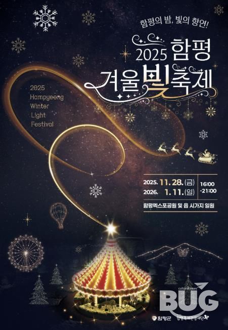 ‘함평 겨울빛축제’는 11월 28일부터 내년 1월 11일까지 45일간 열리며, 축제 범위를 읍 시가지까지 확대해 지역 상권과 연계한 야간 관광형 축제로 개최될 예정이다.