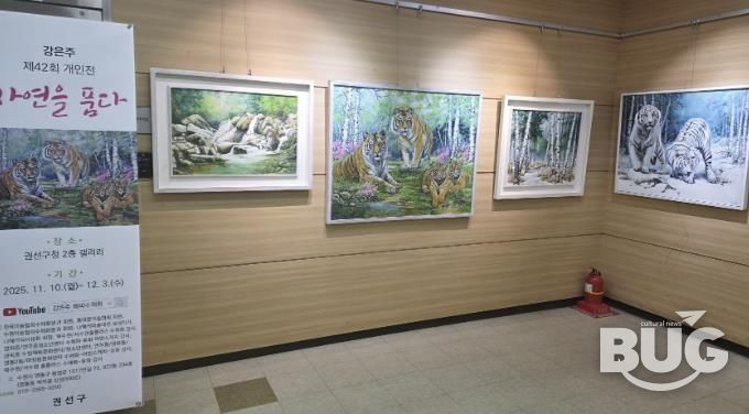 이번 전시회의 대표 작품인 ‘봄봄’은 역사 속 존재했던 한반도의 호랑이가 인간의 욕심으로 현재는 멸종동물인 안타까운 현실을 조망하고 여전히 우리 곁을 지켜주는 호랑이를 통해 자연의 아름다움을 보여준다.