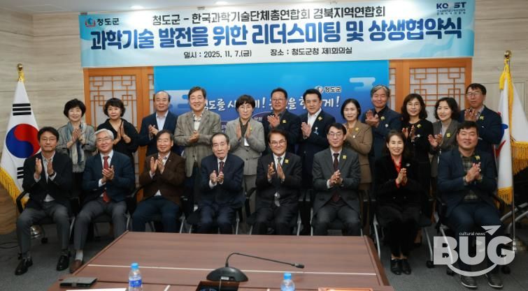 부울경문화뉴스 관리자 기자 | 청도군과 한국과학기술단체총연합회 경북지역연합회는 7일 청도군청 제1회의실에서 청도군 간부공무원과 경북지역연합회 임원 등 30여 명이 참석한 가운데 ‘경북 과학기술 발전을 위한 리더스미팅’을 개최했다.