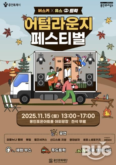 부울경문화뉴스 관리자 기자 | 용인문화재단은 오는 11월 15일 오후 1시부터 5시까지 용인포은아트홀 야외광장에서 시민들과 함께하는 가을맞이 축제 '2025 어텀라운지페스티벌'을 개최한다.