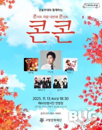 부울경문화뉴스 관리자 기자 | 고양문화재단은 오는 11월 13일 오후 6시 30분, 고양시 덕양구에 위치한 제60보병사단 연병장에서 [권율부대와 함께하는 콘서트 차량 네 번째 콘서트 ‘콘콘’]을 개최한다.