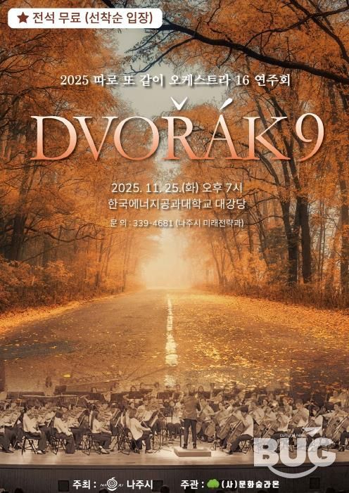 전라남도 나주시는 오는 25일 오후 7시 한국에너지공과대학교 대강당에서 2025 ‘따로 또 같이 오케스트라 16’ 연주회 ‘드로브작 9(DVORAK 9)’를 개최한다고 밝혔다.