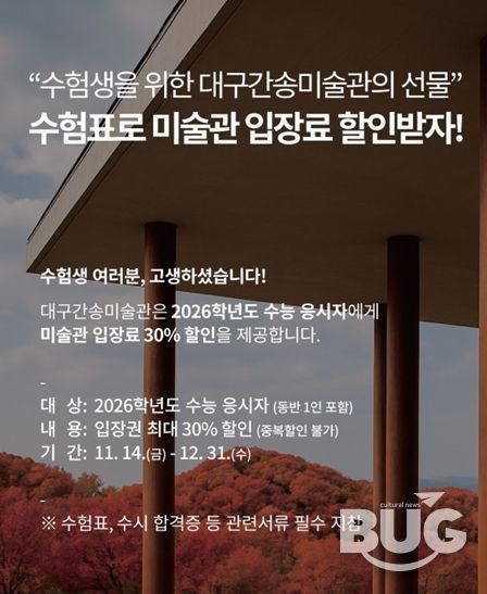 수험생 대상 입장료 30% 할인(동반 1인 포함) 및 참여형 이벤트 진행, 11월 14일부터
