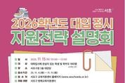 부울경문화뉴스 관리자 기자 | 서울 서초구가 수능 이틀 뒤인 11월 15일 오전 10시 서초구청 2층 대강당에서 수험생과 학부모를 위한 ‘2026학년도 대입 정시 지원전략 설명회’를 개최한다고 밝혔다. 수험생들의 필수 코스로 자리 잡은 서초구의 ‘대입 정시 지원전략 설명회’는 ‘교육1번지’ 서초가 매년 수능 직후 가장 빠르게 여는 입시 설명회다. 올해는 국내 최고 수준의 입시 전문가 2명이 120분간 핵심 전략을 압축해 전달하는 ‘올인원(All-in-One)’ 특강으로 진행될 예정으로 수능 직후 빠르게 정시 정보를 얻을 수 있는 자리인 만큼 수험생과 학부모들의 높은 관심이 예상된다. 설명회 1부에서는 임성호 종로학원 대표이사가 ▲2026 정시 합격선 예측 ▲의대정원 축소로 인한 ‘사탐런’(이과생의 사회탐구 응시) 변수 ▲무전공 선발 확대의 파급효과 등 분석으로 수험생들이 급변한 정시 환경 속에서 자신의 위치를 파악하고 전략적으로 지원할 수 있도록 돕는 시간이 마련된다. 이어서 2부에서는 장문성 종로학력개발원장이 ▲대입 일정 체크리스트 ▲대입 경쟁률 예측 ▲수도권 주요 대학 정시 모집요강 등 분석을 통해 수험생과 학부모가 반