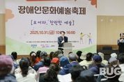 부울경문화뉴스 관리자 기자 | 군포시는 군포시장애인종합복지관 주관으로 10월 31일 장애인센터 내 다목적실에서 2025년 장애인문화예술축제를 개최했다. 이번 축제는 2025년 경기도 장애인 문화예술진흥사업으로 선정되어 경기도와 군포시의 지원으로 장애인과 비장애인이 함께 어우러져 창의적이고 감동적인 공연과 전시가 펼쳐졌다. 하은호 시장과 시낭송동아리 ‘수리담시’회원의 시낭송 공연으로 시작한 행사는 발달장애인으로 이루어진 어울림합창단의 합창공연과 한세대학교 음악학과 학생들의 관현악 공연 등으로 이어졌다. 다채로운 공연과 함께 도예토, 퀼트, 사군자, 미술, 사진 등의 전시는 예술의 무한한 감동을 시민과 함께 나누는 뜻깊은 시간이 됐다. 특히 누구나 함께 즐길 수 있는 캘리그라피와 가죽공예 체험프로그램도 마련되어 예술의 장벽을 낮추고 참여의 폭을 넓혔다. 하은호 군포시장은 “시민 모두가 함께하는 문화예술의 장을 확장하는 계기가 되길 바란다”라며 “앞으로도 장애인 문화예술 지원에 최선을 다해 포용과 화합의 도시를 만들어가겠다”고 말했다.