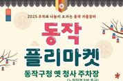 부울경문화뉴스 관리자 기자 | 동작구가 오는 11월 1일 오전 10시부터 오후 5시까지 구청 옛 청사 주차장(노량진역 5번 출구)에서 ‘2025 추억과 나눔이 오가는 동작 가을장터’를 연다고 밝혔다. 이번 행사는 주민과 단체가 직접 참여하는 ‘플리마켓’과 김장철 맞이 ‘직거래장터’를 한자리에서 즐길 수 있도록 기획됐다. 먼저 플리마켓은 약 30개 부스에서 의류, 도서, 소품 등 다양한 중고 물품을 판매하며 일상 속 자원순환 문화를 실천하는 장으로 마련된다. 직거래장터에서는 자매결연 도시 등에서 들여온 김장철 필수 품목(배추, 무, 고춧가루 등)과 지역특산물이 시중가보다 최대 33% 저렴하게 판매된다. ▲축산물 타임세일(11시·13시·15시) ▲선착순 증정품 지급 ▲당일 배달서비스(박스 단위, 관내 한정) ▲칼갈이 부스(인당 2개, 개당 100원) 등 다양한 이벤트도 진행된다. 아울러 주민들이 즐길 수 있는 ‘체험 프로그램(한지 무드등·편백 향낭 만들기 등)’과 구청 직원이 참여하는 ‘사랑 나눔 바자회’도 운영된다. 바자회 수익금은 동작복지재단 등에 후원금으로 활용될 예정이다. 이와 함께
