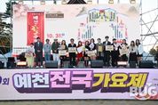 부울경문화뉴스 관리자 기자 | 제10회 예천전국가요제가 2일 오후 2시,‘2025 예천활축제&농산물축제’ 특설무대에서 열렸다. (사)한국연예예술인총연합회예천지회(지회장 채희삼)의 주관으로 진행되는 이번 대회에는 전국에서 엄선된 본선 12팀이 출연하여 열띤 경연을 펼쳤다. 예천전국가요제는 지역 문화예술 발전과 대중음악 활성화를 위해 꾸준히 이어져 온 행사로 예천색소폰동호회의 식전공연을 시작으로 본선 진출자 12팀과 강민주, 통일메아리악단, 인댄스 무용단 등의 초청공연이 펼쳐졌다. 시상식에서는 400만 원의 상금이 걸린 대상은 문정옥 씨(대구) 금상은 유소라 씨(충주)가 수상했으며, 은상은 장혜진 씨(문경), 동상은 강나은 씨(서울), 가창상은 김정희 씨(영주), 인기상은 최우혁 씨(대구)에게 각각 수여됐다. 수상자들에게는 수상의 영예와 함께 많은 격려가 전해졌다. 김학동 군수는 “지역문화 활성화와 주민 화합의 장을 마련해 가고 전국가요제가 더욱 발전하여 예천을 대표하는 문화예술축제로 자리매김하기를 바란다”고 전했다.